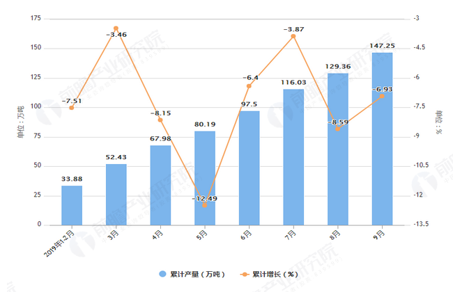 2019年9月江西省原鹽產量及增長情況分析